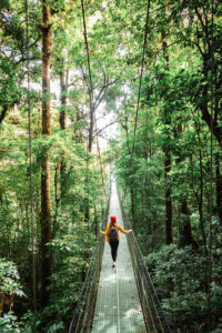 Anschließend erwartet Sie ein weiteres Highlight: ein Spaziergang über Hängebrücken, die Sie hoch oben durch die Baumkronen des Nebelwaldes führen. Erleben Sie den Dschungel aus der Vogelperspektive und entdecken Sie faszinierende Ökosysteme, die sonst verborgen bleiben. Ihre erfahrene Reiseleitung gibt Ihnen spannende Einblicke in die Tier- und Pflanzenwelt – lebendig, unterhaltsam und informativ. Die Hängebrücken sind stabil und gut begehbar – ein Naturerlebnis für alle Sinne, das Sie nicht vergessen werden.